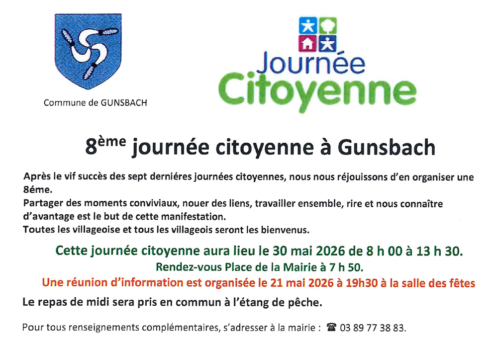 • un dépôt dématérialisé en utilisant l'adresse internet gunsbach.mairie@orange.fr